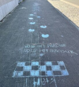 Ek stap uit met die klanke van saluutjes agter my, en die Vlaamse passie-woorde “de koers is van ons” wat bly maal in my kop.