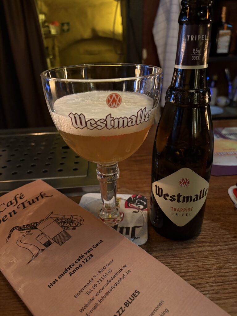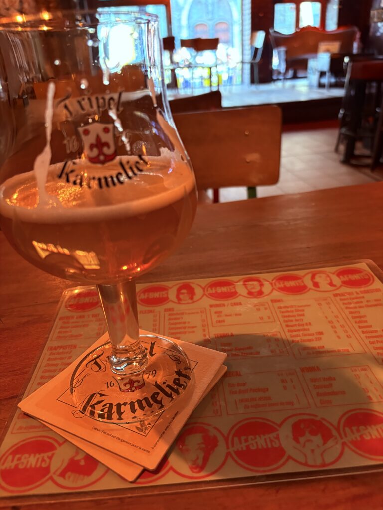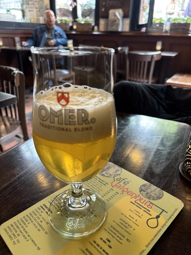 Die rustige Vlaamse gesprekke rondom my in die gedempte lig sypel vreedsaam binnekant toe… soos die bier.