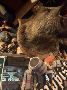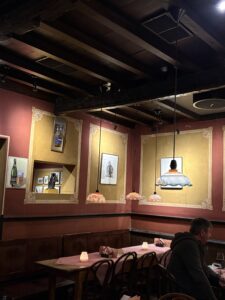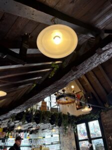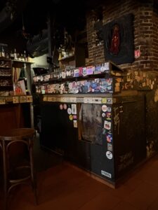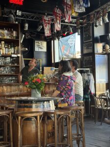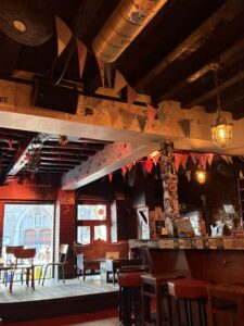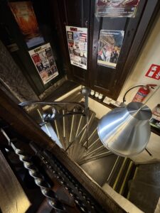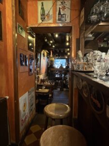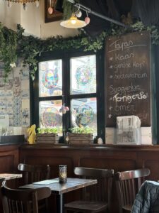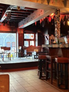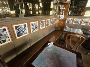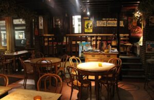 Dis ‘n tipe plek waar mens instap en daar is ‘n ou reuk, en min lig. Baie hout – teen die mure ook – en nie ‘n laptop in sig nie. Daar hang rye swart-en-wit foto’s van mense – dikwels geraam… en dekades oud. Die plek het hoekies en draaie, met ou tafeltjies, en nou gangetjies na die kelder of toilette. Dis gesellig, eenvoudig, oud, informeel. En die mure en plafon is – behalwe vir die hout – bruin van al die jare toe rook in die binnekant nog wettig was.