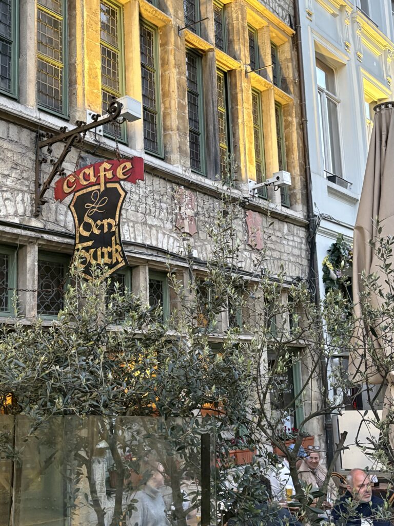 Legendariese plek. Blykbaar die oudste bruin kafee in Gent – dateer uit die 1200’s. Is reg oorkant die Stadshuis geleë, en daarom ‘n gunsteling-plek vir raadsmense en politieke tipes. Die atmosfeer is nogal heerlik gentleman-agtig. Geen agtergrond-musiek nie – net die kalm atmosfeer van rustige aand-debatte. Oop tot so 04:00 soggens.