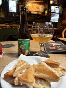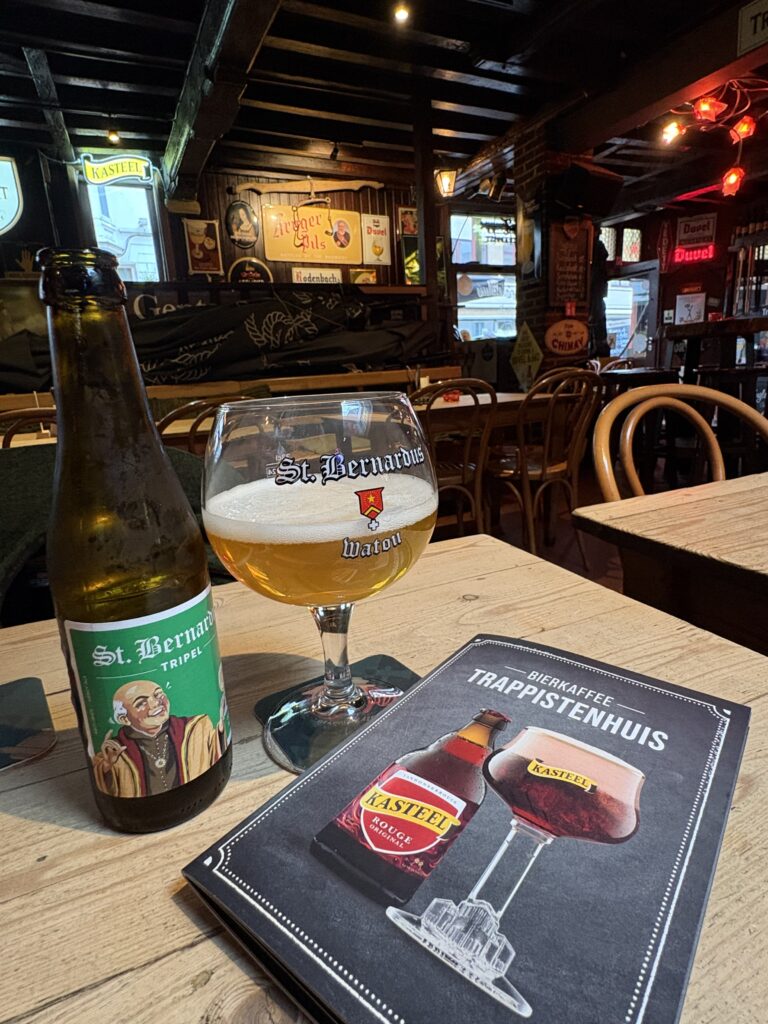 Ek vra vir ‘n St Bernardus Tripel… van Watou in die Westhoek. Die bekende botteltjie en glas word voor my neergesit en ek skink self. Aaaii! Wie kan nou ooit iets sê teen ‘n Bernadetje!?