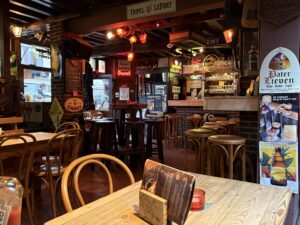 Trollekelder is bruin, maar gepak. Miskien omdat dit Saterdagaand is. Boonop ‘n swerm geknetterde Hollandse rampartyers wat mekaar gereeld knuffel – hier is vanaand min rustigheid. Dit raas – en die drie ouens agter die toonbank (toog) is bedrywig.