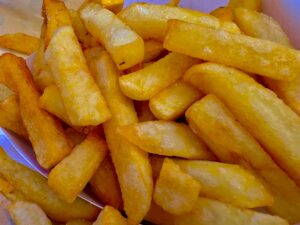 Of natuurlik frietjes: “French fries”. Of “slap tjips” sou ons in SA sê. Maar beide is ‘n belediging. Diep. Want dis NIE Frans nie – dis ‘n Belgiese trots. En dis definitief NIE slap nie! Nee! Hierdie word gemaak van bientje patatten (die tipe aartappel), en word tradisioneel op spesifieke metodes gebraai in beesvet (“ossewit”). Vra maar enige frituur.