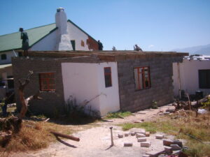 Daar was intens moeilike oomblikke – tot ons weer op ‘n desperate Maandagoggend of twee vir Ronéll laat kom… help asseblief! En sy hier aankom met nat hare nog pas uit die stort – en ons vir haar die ineengestorte muur, of verrotte verskuilde houtbalk, of verskil in ontblote vloerhoogte uitwys, en hardop weeklaag dat ons eerder die plek maar moet verkoop! En sy – tot ons verbasing – liries raak oor die briljante ontdekking wat gemaak is, en hoe ons dit-en-dat kan doen en nog ‘n idee wat sy nou het, en waar kry ons daardie lieflike deur!? (wat ons op die punt was om weg te gooi), …