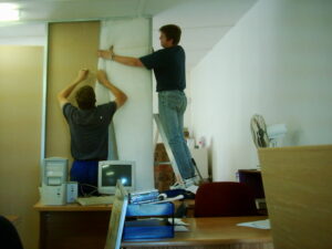 Die buitegebou (Tom se eertydse werkswinkel) was intussen ingerig as kantore en die personeel het ook getrek vanaf Upington en hier begin werk. Familie het ingespring met Danie wat help met dry walling , Pa wat diefwering gemaak het, en Dirk wat tuinhekke en katte-toegange bou en plaveisel lê.