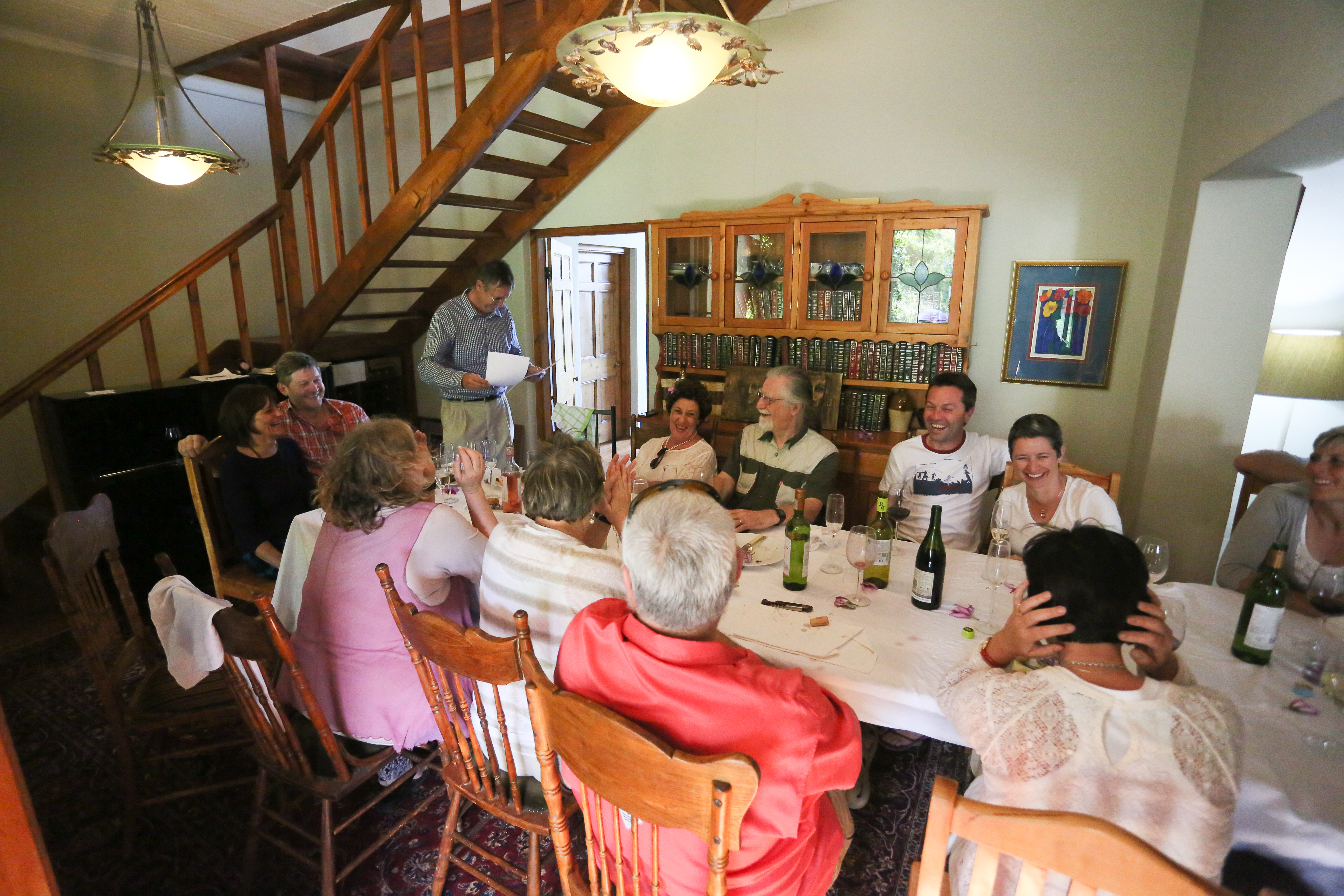 In this house we had – and still have – the privilege of countless visits from family. And friends – from close by and from far – sometimes very far. Meals and braais and music nights and wine by the fireplace. And soirees when there were so many people we had them practically “hanging from the rafters” (do I see Stephen frowning?) .