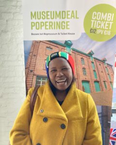 By die Talbot museum, Poperinge, waar sy ook toergids is.