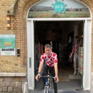 And meeting the owner, Kurt Titeca, is a real treat. This guy! Passionate, friendly, knowledgeable, talkative, proud. And really into finding ways of inspiring people to live in harmony with each other. Often with the bicycle as centerpiece… and his polkadot cycling shirt movement – check it out here: poppyshirt.com