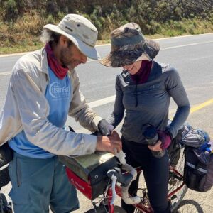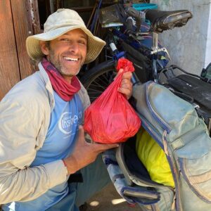 Dividing his life roughly into thirds, this Canadian professor lectures for parts of the year, and spends his remaining time on serious adventure traveling and international volunteer work. Over the recent 10 weeks he has been cycling from Zimbabwe on his way to the Western Cape. Often sleeping in his little tent along the roadside.
